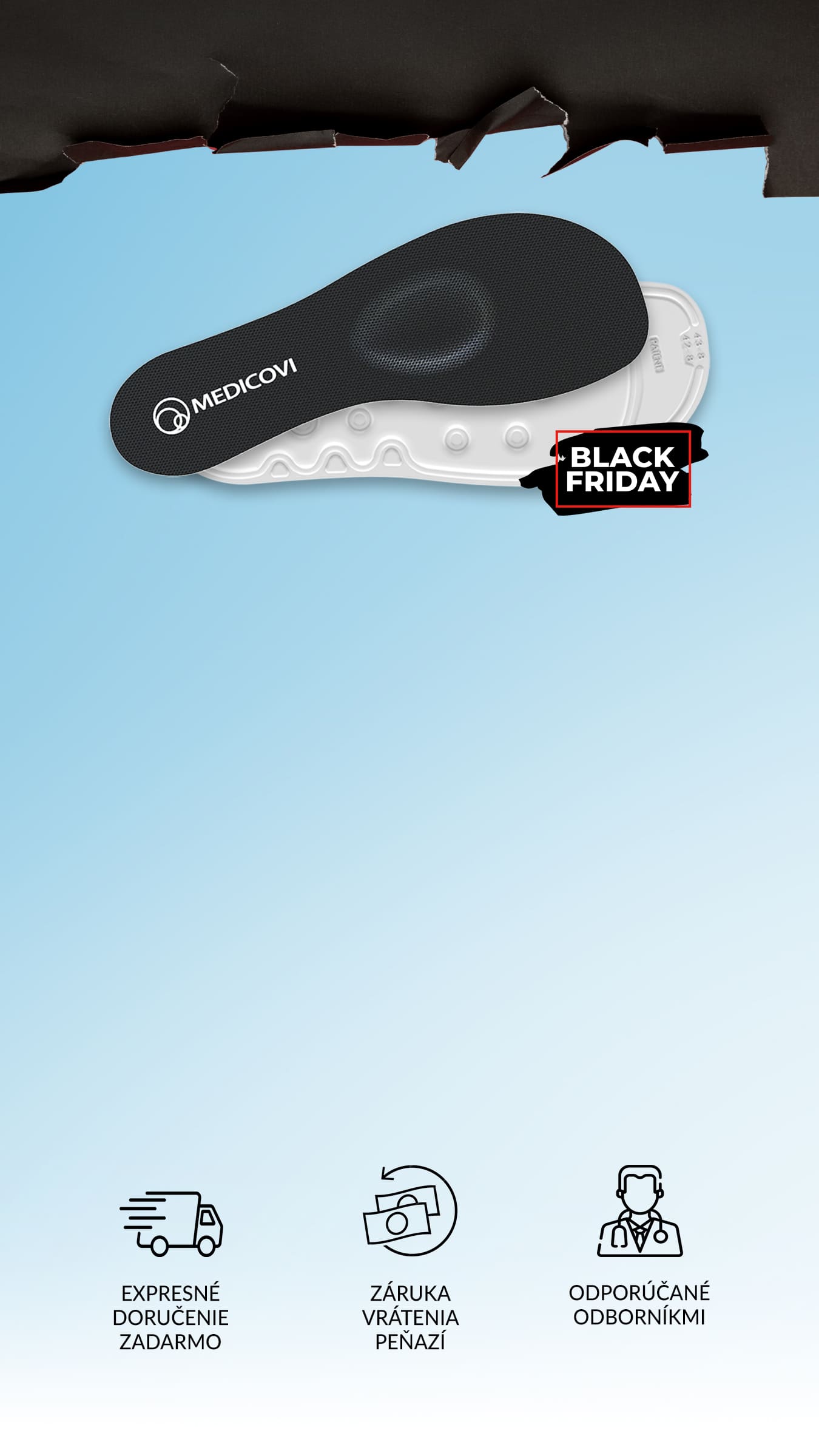 Účinok vložiek MEDICOVI je porovnateľný s nasadením dioptrických okuliarov – rozdiel cítite okamžite už po prvých krokoch. Pri pravidelnom nosení sa účinok ešte zvýrazní.