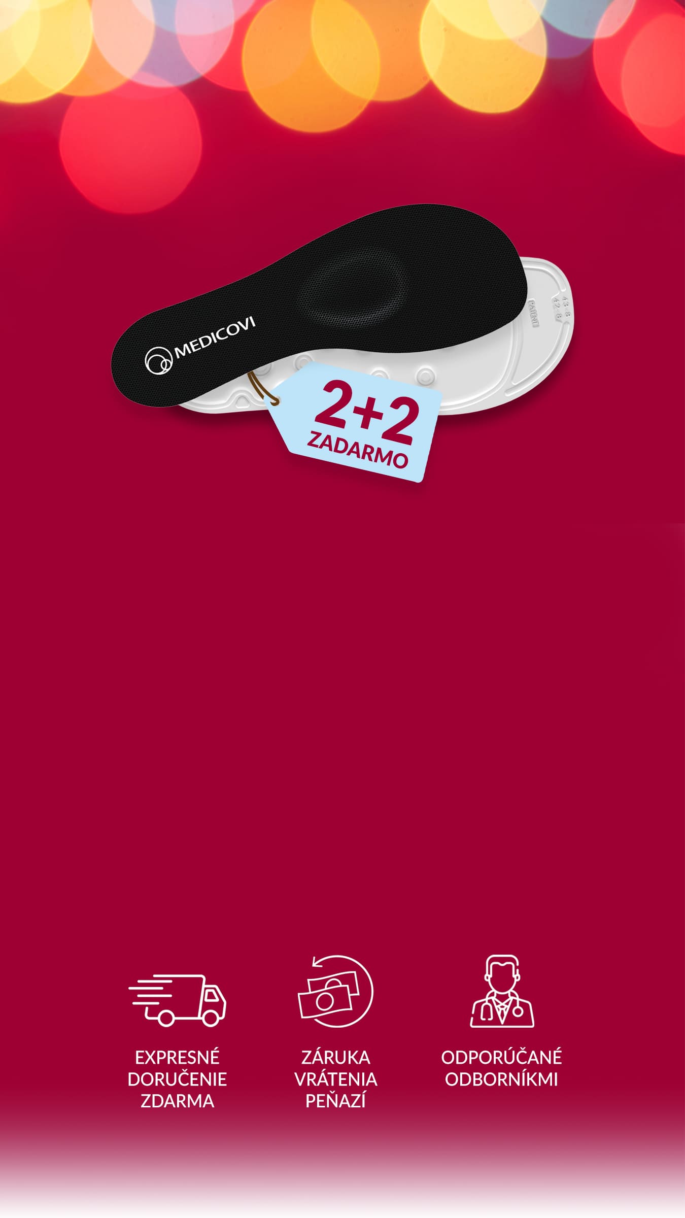 Vložky MEDICOVI využívajú patentovanú dánsku technológiu, precízne vyrábanú na Slovensku. Vďaka terapii vlnami vody pri každom kroku vznikajú jemné hydraulické vlny, ktoré odľahčujú preťažené miesta, podporujú prirodzené prekrvenie a prinášajú okamžitú úľavu od bolesti.