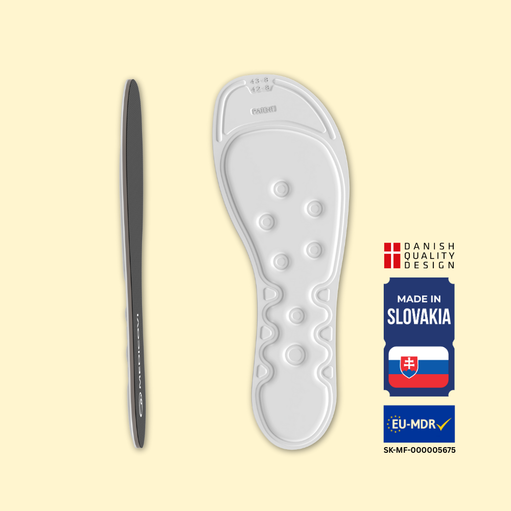Vložky MEDICOVI s vodnou membránou tlmia nárazy, chránia kolená aj kríže a pomáhajú telu lepšie zvládať záťaž počas celého dňa.