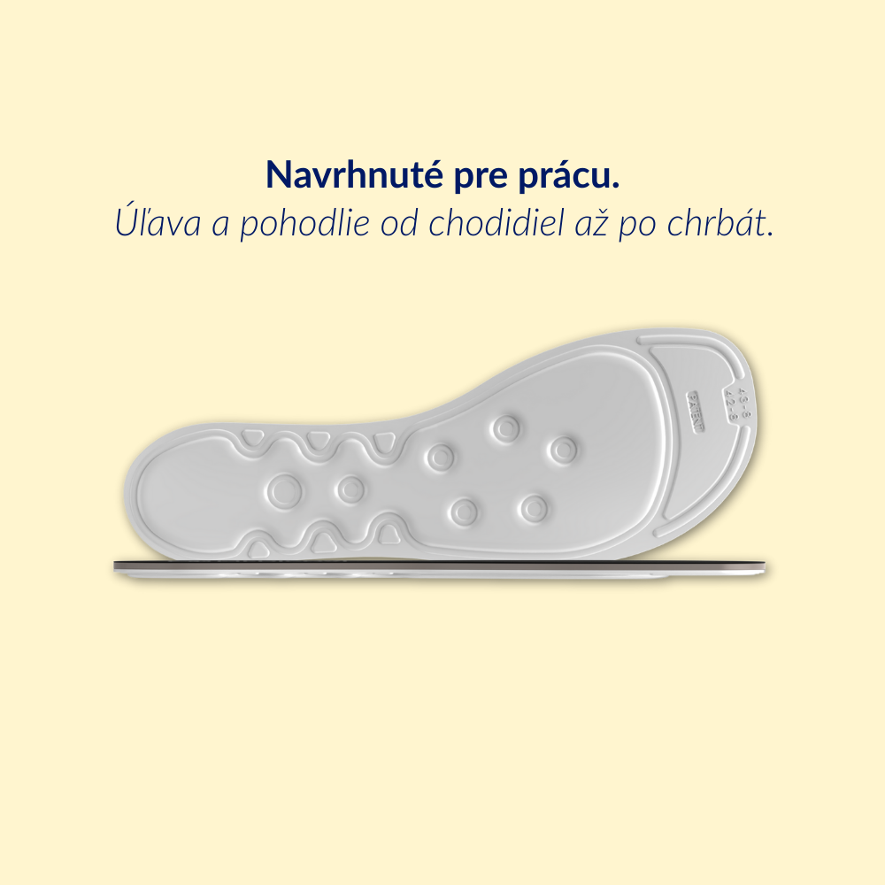 Pracovné vložky MEDICOVI prinášajú dynamické rozloženie tlaku, šetria kolená a chrbticu a podporujú prirodzenú rovnováhu tela. Zlepšený krvný obeh v nohách pomáha predchádzať pocitu ťažkých nôh a zvyšuje vašu výdrž počas celej zmeny.