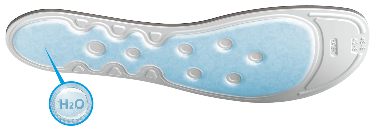 Špeciálne navrhnutá vodná membrána aktivuje nervové receptory v chodidlách pri každom kroku. Telo okamžite zapája prirodzené stabilizačné mechanizmy, čím zlepšuje držanie, stabilitu aj plynulosť pohybu. Výsledok? Pohyb, ktorý je ľahký, prirodzený a sebavedomý – bez námahy, iba s podporou vlastného tela.